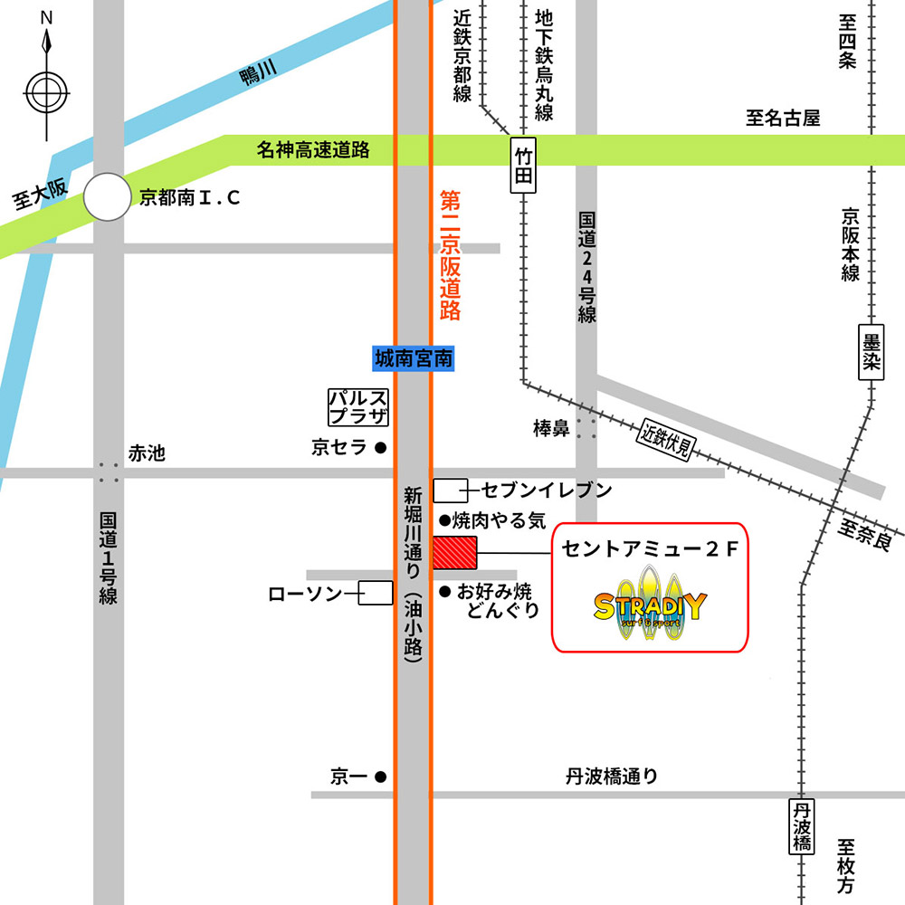 - ② 地下鉄烏丸線/近鉄奈良線 竹田駅西口より